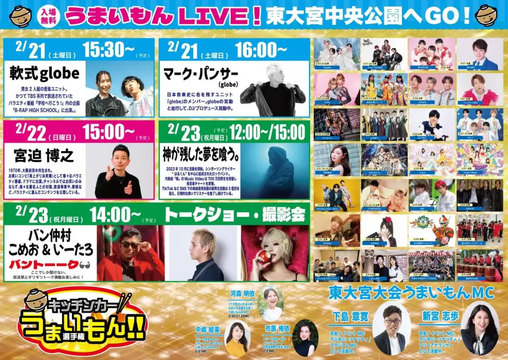 2026年2月20日(金)~23日(月・祝)までの4日間、東大宮5丁目中央公園にて開催します。東大宮での開催は今回が初めてとなります!有名人によるトークライブなど、ステージイベントもありますので、ぜひご来場ください! FacebookXBluesky